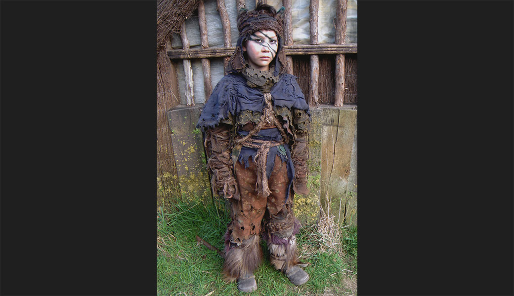 Shot for a large part on location in Wellington New Zealand, during winter, the costumes had to practically address this whilst also reflecting a child’s approach to making what they would wear and link to the aesthetic seen in “The Tribe”. As there were three specific tribes I based each one on a historical period as a foundation for the design.